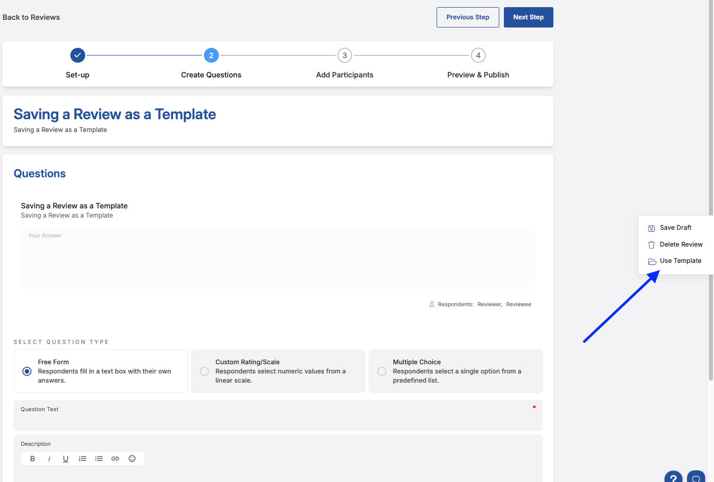 TIP: Save your review as a template if you plan on using it again in the future. Once you publish it, you will NOT be able to convert it to a template.