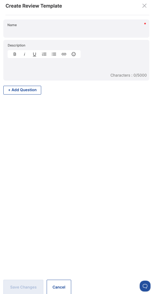 Questions added from a review template inherit all attributes, so the question text, respondents, multiple choice options, scale values, etc.