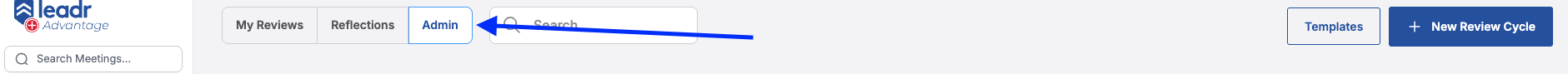 Once you have created a Review Cycle, you can find it under the 'Reviews' tab->Admin in Leadr.