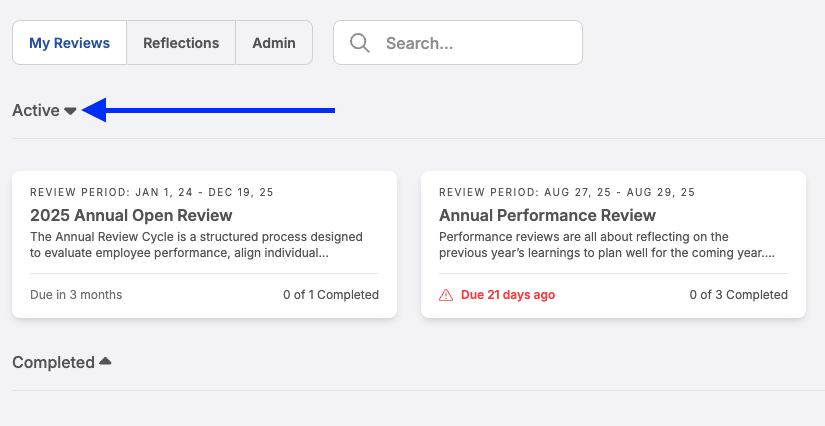 - Navigate to the 'Completed' section within the Reviews tab. This should be located at the very bottom of your Reviews.