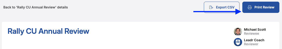 - Locate the Review Cycle you want to export, this can be an active Review or a completed Review.