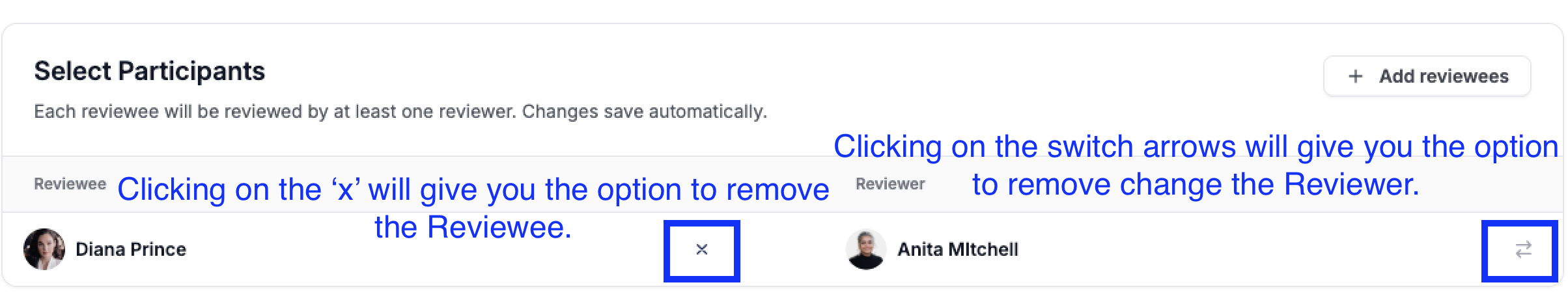 When you choose 'Select Reviews' it will give you a drop down menu of the Participants list.